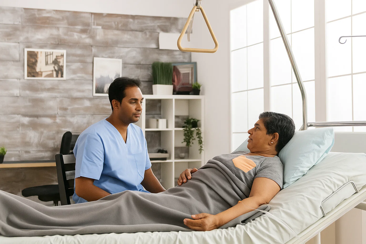Support for patients recovering from surgeries, including vitals check, medication management, and mobility assistance.